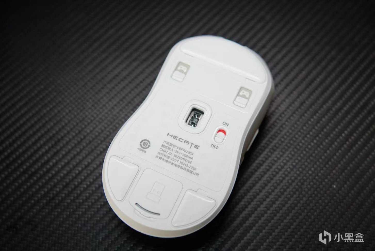 鼠标底部其实其他的大差不差的,唯一值得说的就是鼠标的上方的按键切换扳机,这个扳机可以人让你在有声按键以及静音按键这两个里面进行随意的切换。