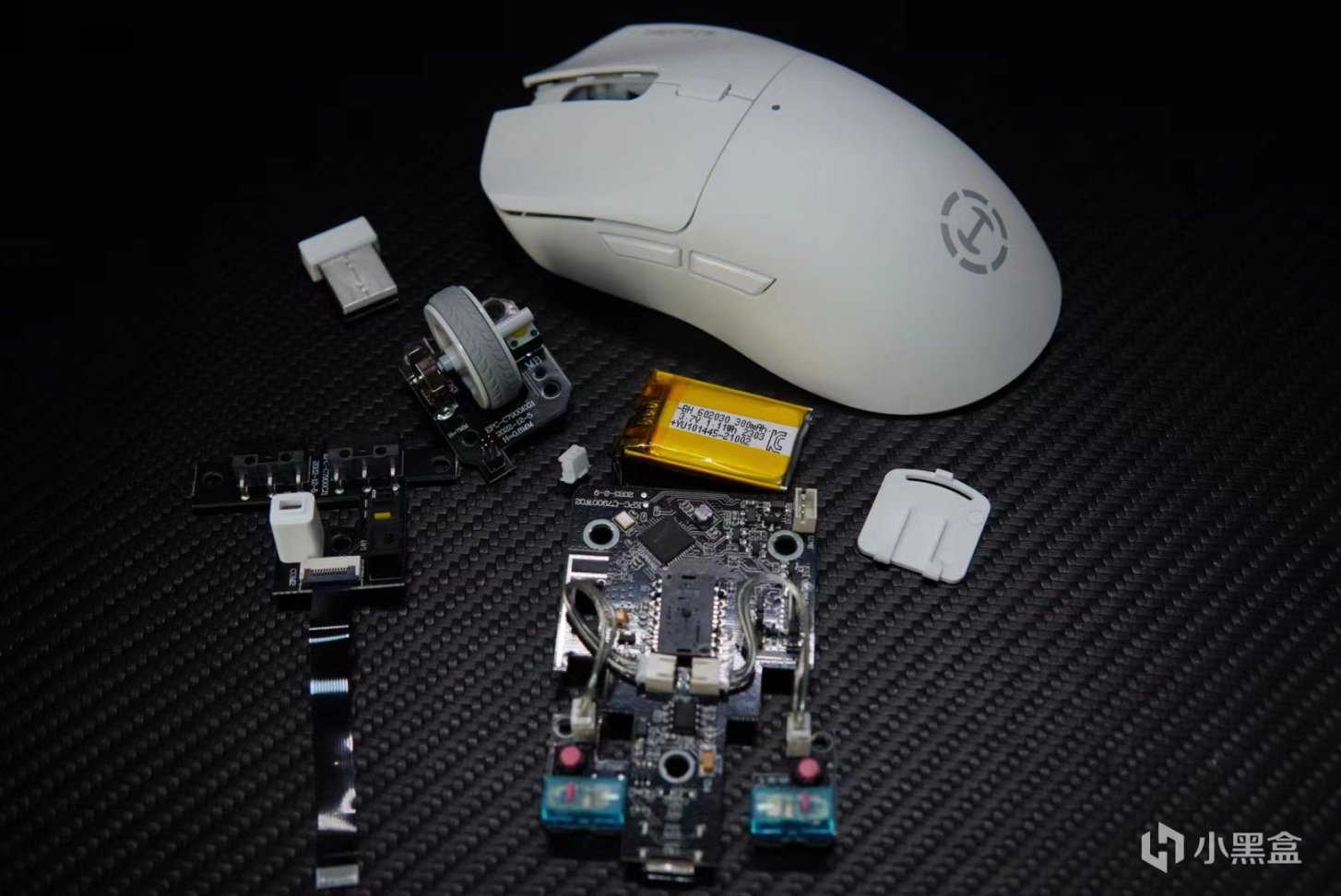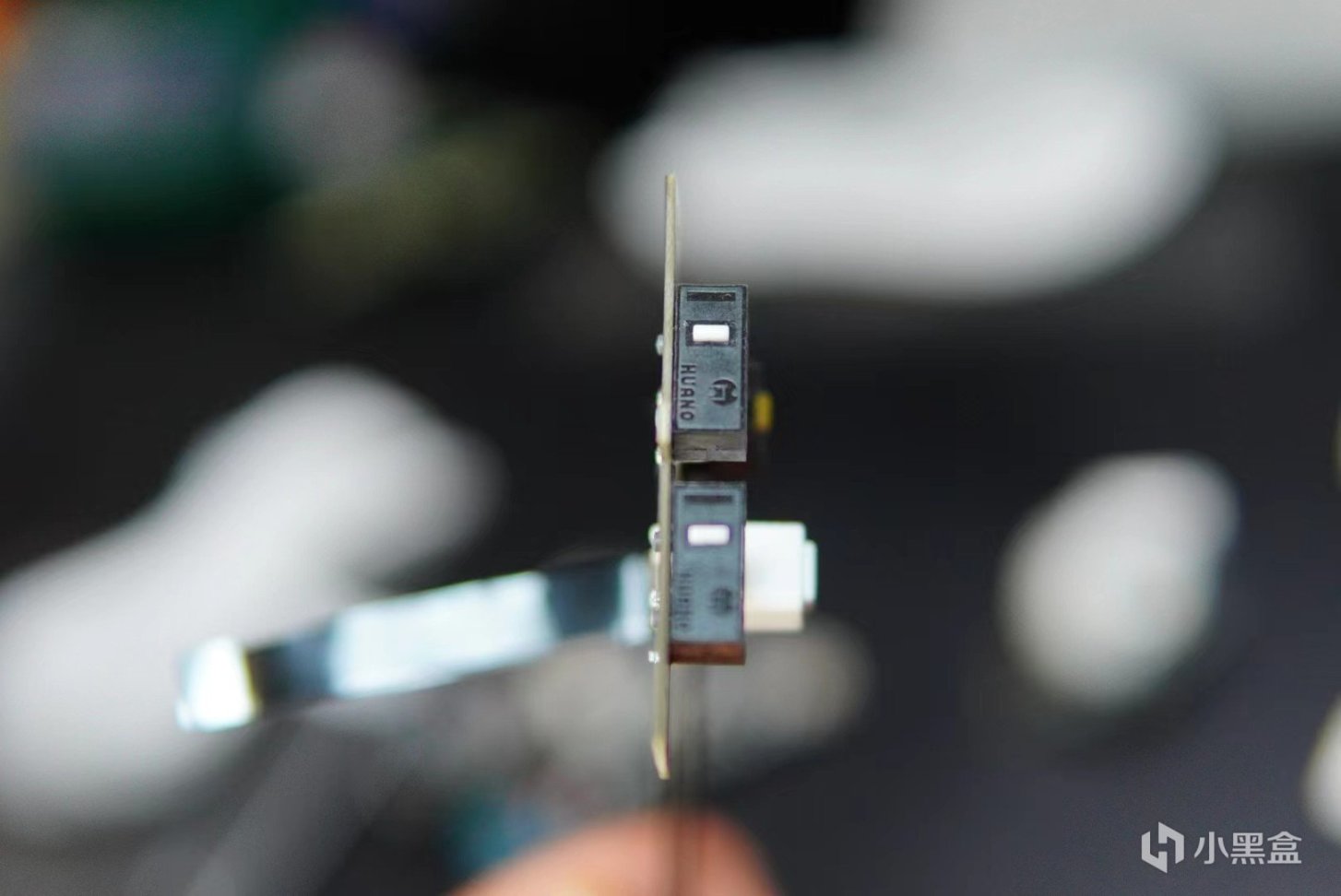 左右按键模块并不在主PCB上,而是有独立的PCB,并固定在滑槽中,通过数据线与主PCB连接。拨动底部的开关,就能在环诺微动和静音微动之间自由切换。