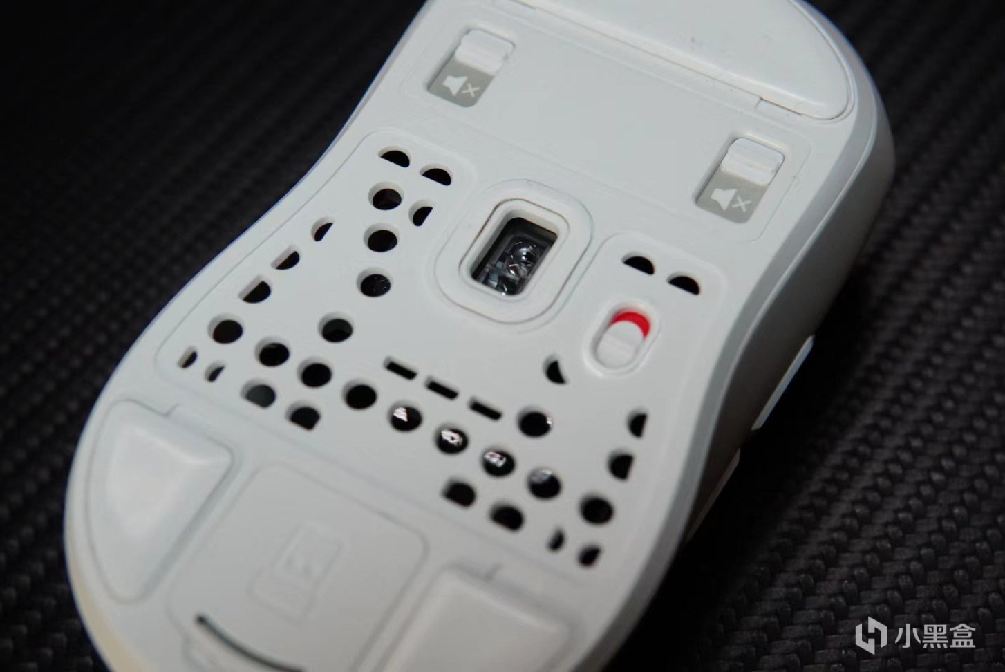 鼠标底部为了减轻重量,在中间进行了开孔的设计。