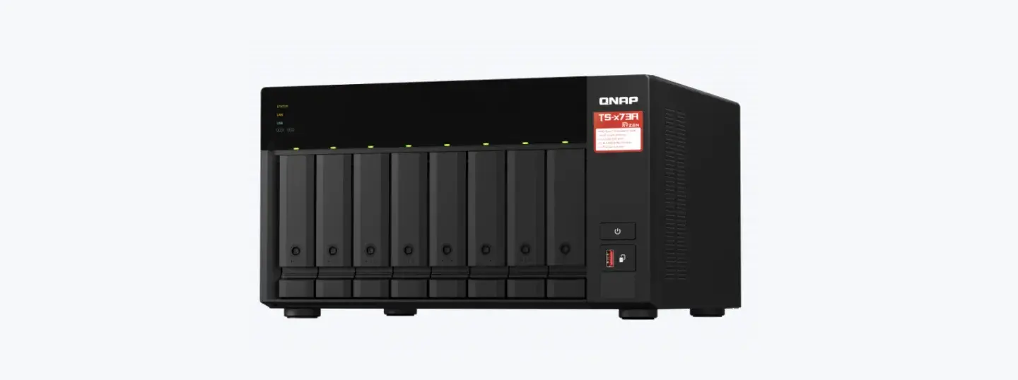 威联通TS-873A是高性能偏向商用也可家用的NAS,采用AMD Ryzen V1500B四核心处理器,性能极强。本身没有集显,如果不插显卡视频转码效率较低,装了显卡性能爆表。它还提供了2个PCIe3.0插槽,2个M.2 NVMe SSD插槽,HDMI2.0接口,2个2.5GbE网口,无论是4K高码率视频创作、万兆文件传输、win11虚拟机、软路由、Docker、HTPC家庭影院都能轻松驾驭,可以说是一步到位的机型。