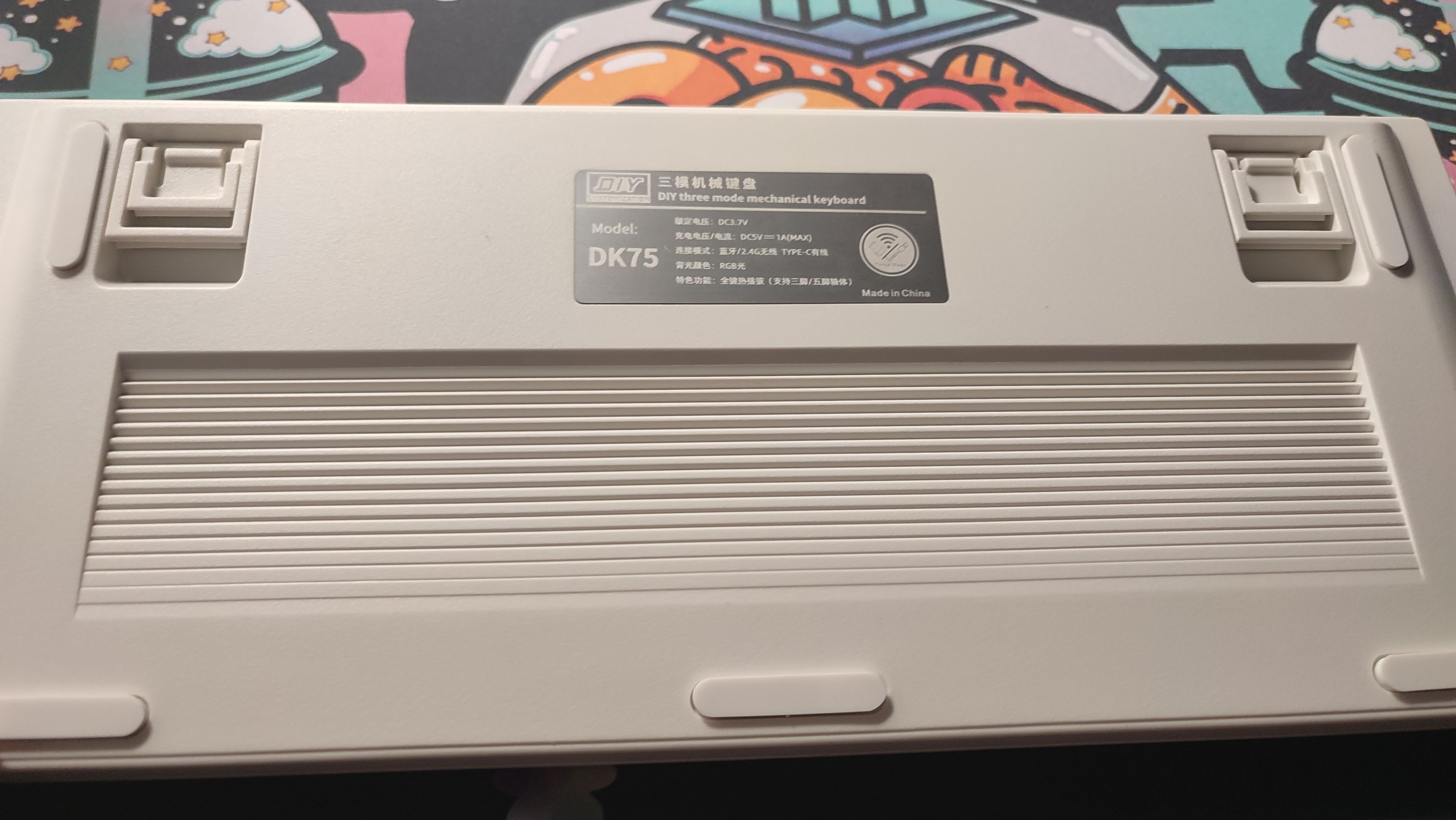 中间就是一块铭牌,上边记录了一些键盘的基础信息。