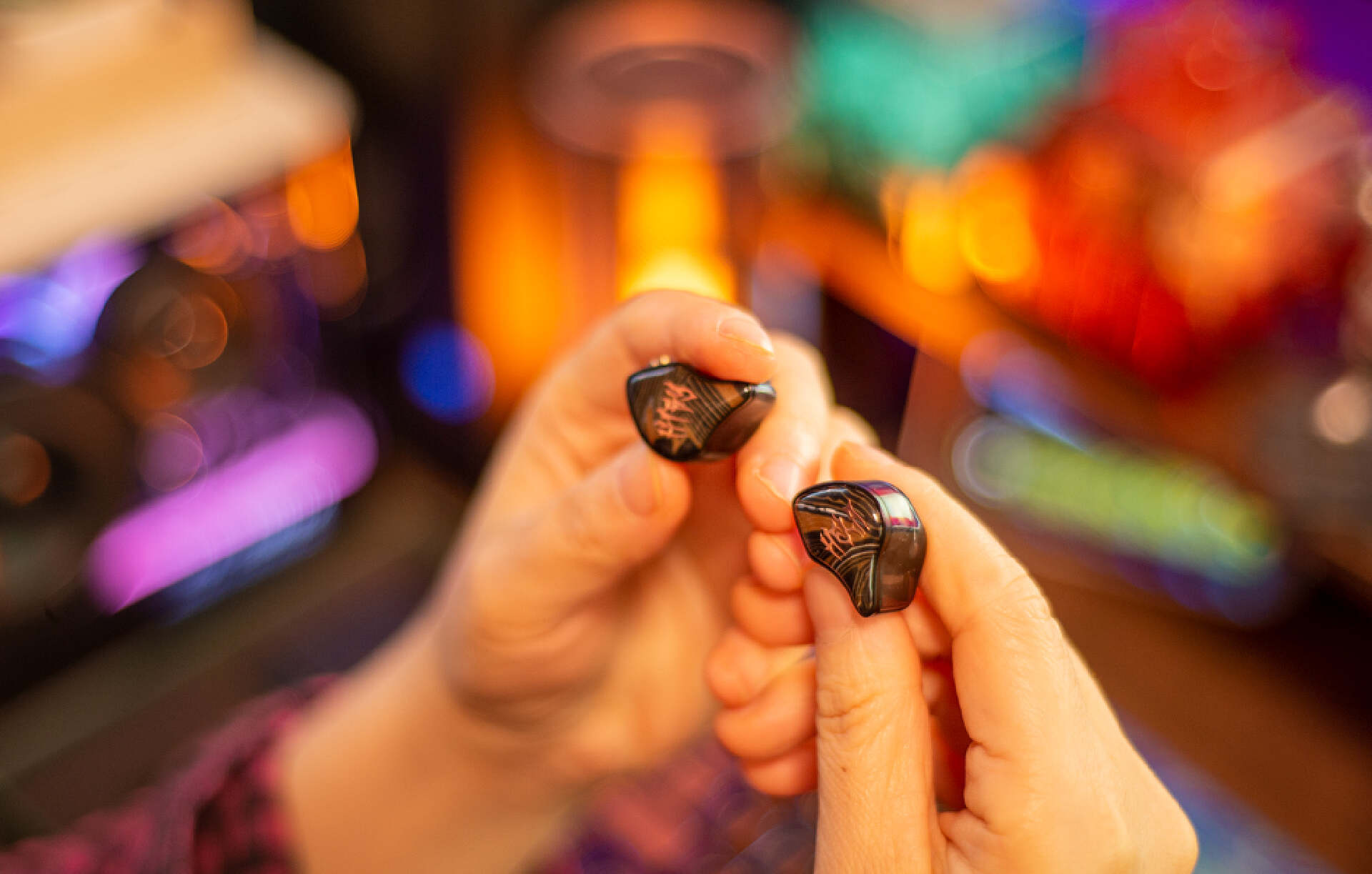 ▼耳机同样选择的海贝家的 HELA。造型上类定制公模能更贴合不同人群外耳轮廓,棕黑的艺术线条搭配全透黑腔体,晶莹透亮,平添一丝神秘气息。圆润的边角弧度,轻量化 PC 材质,以及硅胶耳挂保证了佩戴轻便度,也让长时间使用不会感到疲劳。