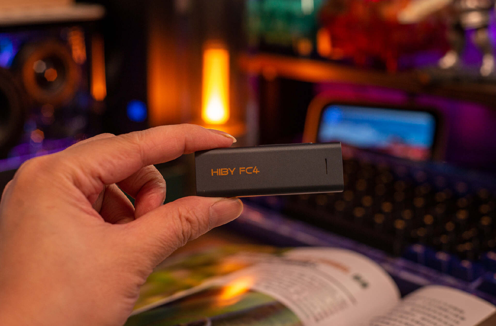 ▼海贝FC4 的造型相当简洁,长条形的尺寸和 U盘类似,工艺倒是相当惊艳。全金属机身,表面磨砂处理,质感细腻触感温润,墨绿喷涂平添一分神秘感。机身没有太多复杂的按键,音量调节、type-c 输入 + 3.5 / 4.4 耳机插孔就是全部,整体的做工相当精致。