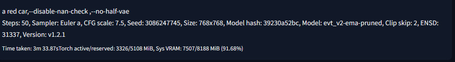 ▲Stable Diffusion推出于2022年,是一款通过深度学习实现文本到图像转变的AICG工具,可以通过输入单词智能生成图片。本次测试中,我使用了 a red car(一辆红色轿车)关键词进行图片生成,具体参数如上图。