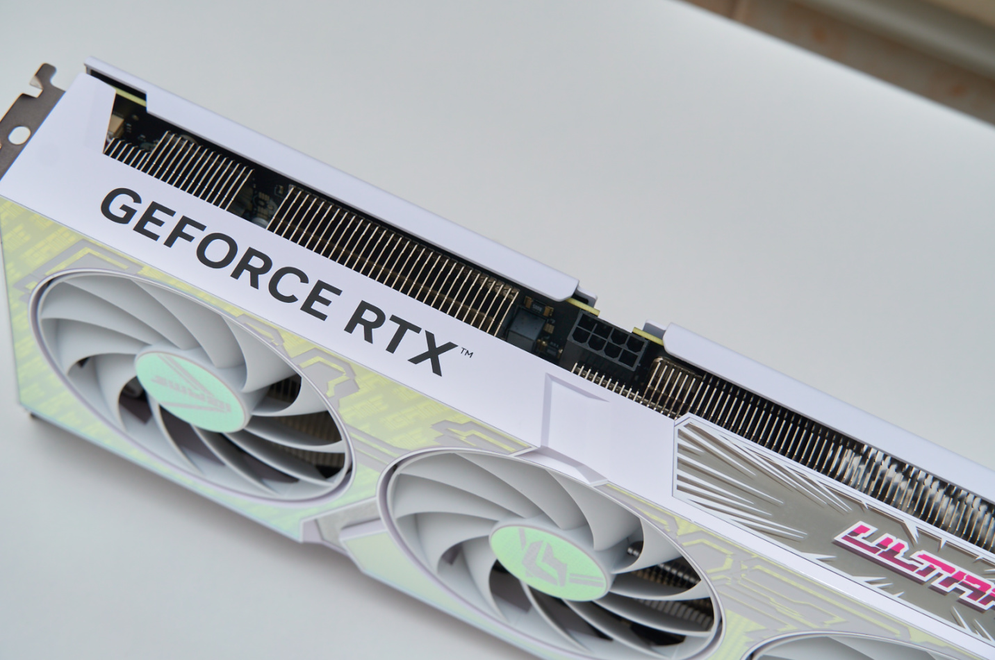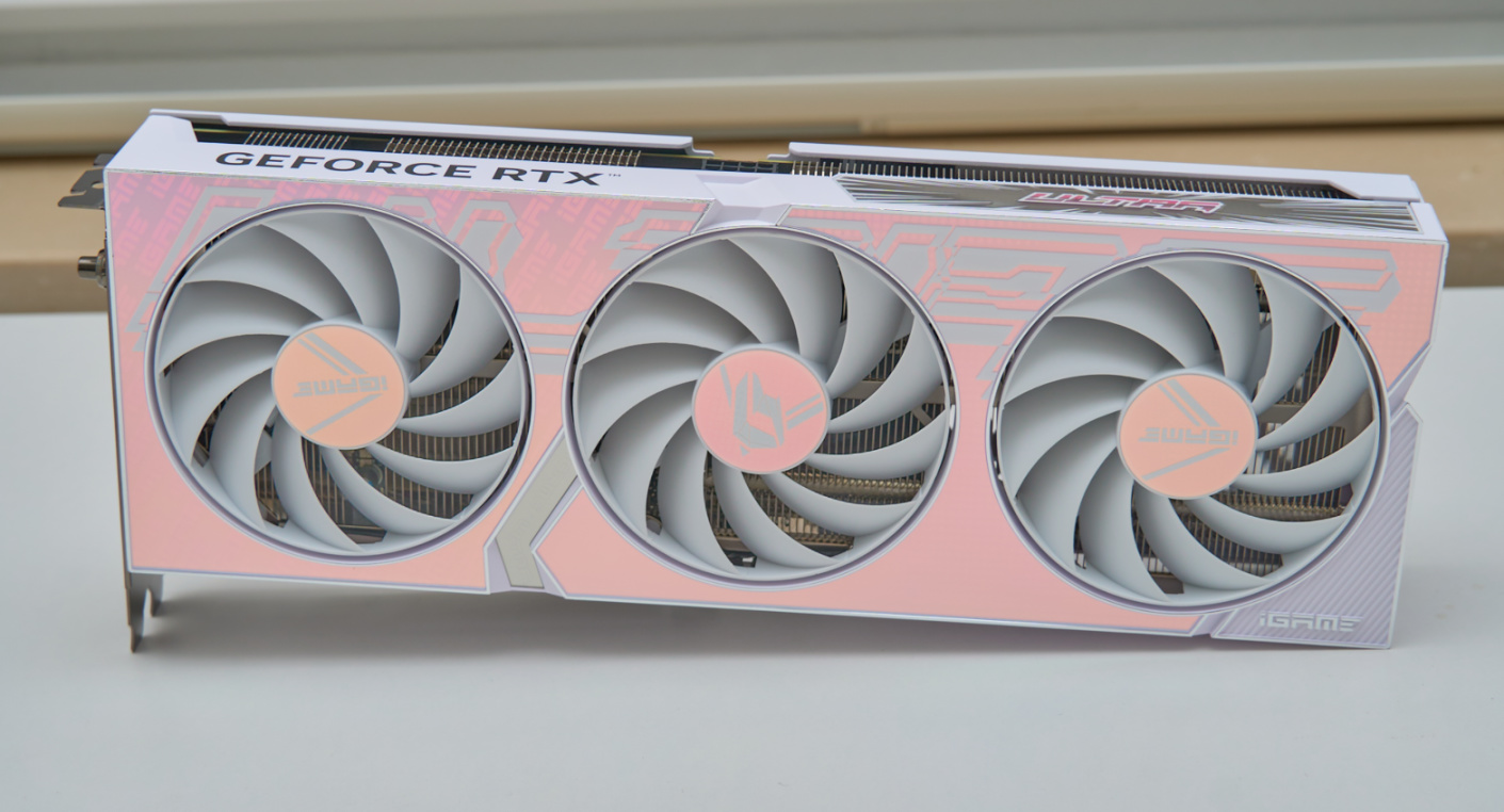 ▲七彩虹RTX40系列的iGame Ultra显卡延续了上代Ultra显卡的白色外甲设计,正面采用大块渐变设计,随着光线的变化呈现出不同的色彩效果,iGame Logo及圆形波点元素作为图案底纹让显卡有着更丰富视觉表现力。