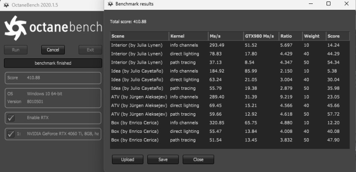 OctaneBench benchmark 测试