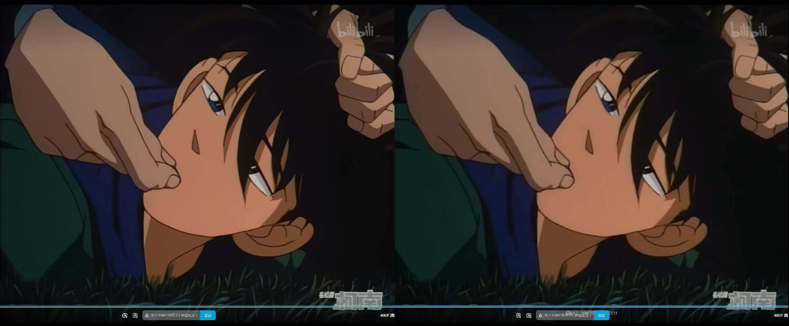 ▲RTX VSR支持流媒体播放,最新版本的CHROME浏览器以及最新版本的EDGE浏览器中均已支持RTX 视频超分辨率技术。我在B站上播放了《名侦探柯南》的第一季,分辨率均为480P,左侧为“RTX 视频增强”开启,右侧为“RTX 视频增强”关闭时,可见左侧画面的清晰度明显优于右侧画面。