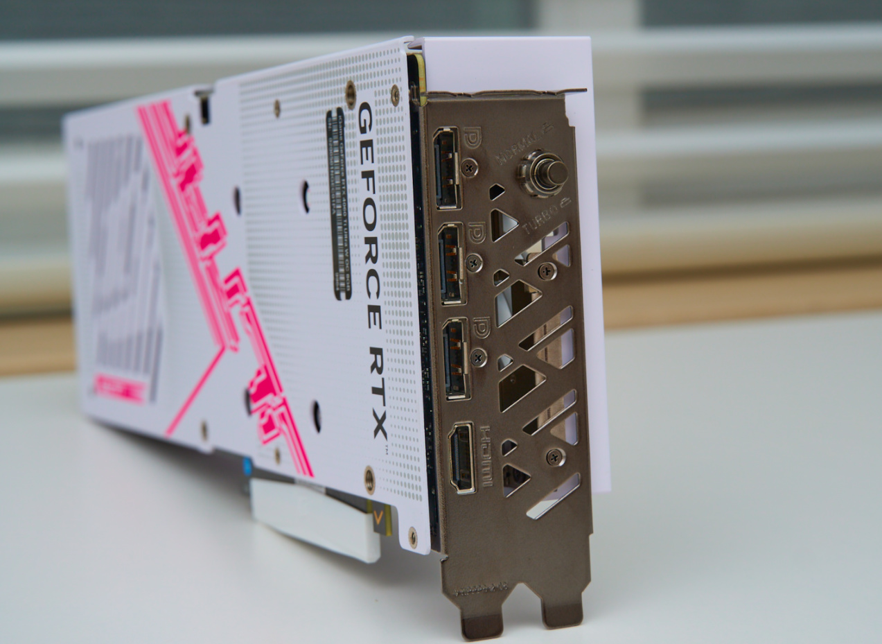 ▲英伟达RTX 40系显卡统一配备了3个DP1.4a、一个HDMI2.1的IO接口,而七彩虹iGame系列著名的一键超频按键也在从RTX 30系到RTX 40系过度的前夕,由塑料材质升级为了金属材质,变得不易损坏脱落,这点好评。