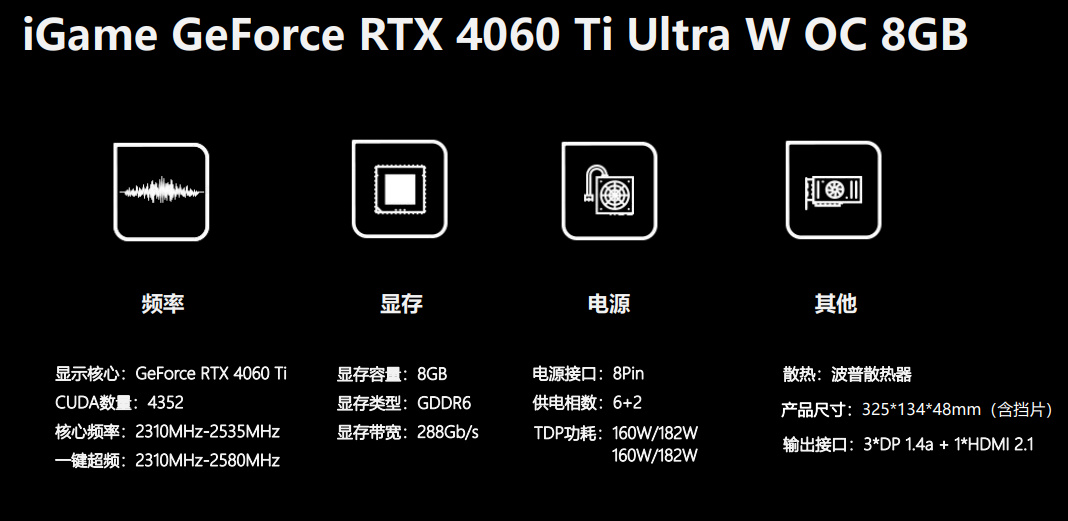 七彩虹 iGame GeForce RTX 4060 Ti Ultra W OC 8G参数详解