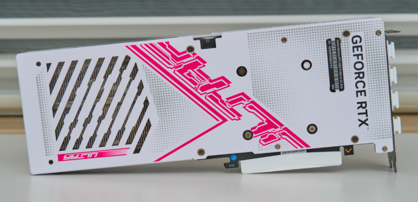 ▲相较于七彩虹iGame RTX30系Ultra,RTX 40系的iGame Ultra显卡背板配置了通风孔,散热性能大幅提升,且外观更加方正刚毅了。