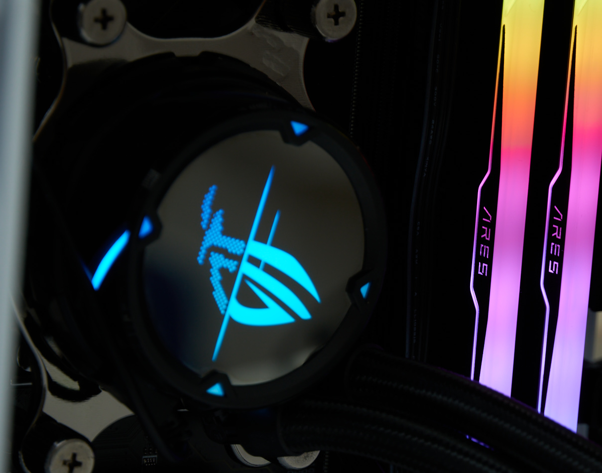 ▲水冷使用的是带有败家之眼的ROG STRIX飞龙二代,这款水冷的冷头使用了第七代Asetek水冷,散热效果更好,噪音更低。