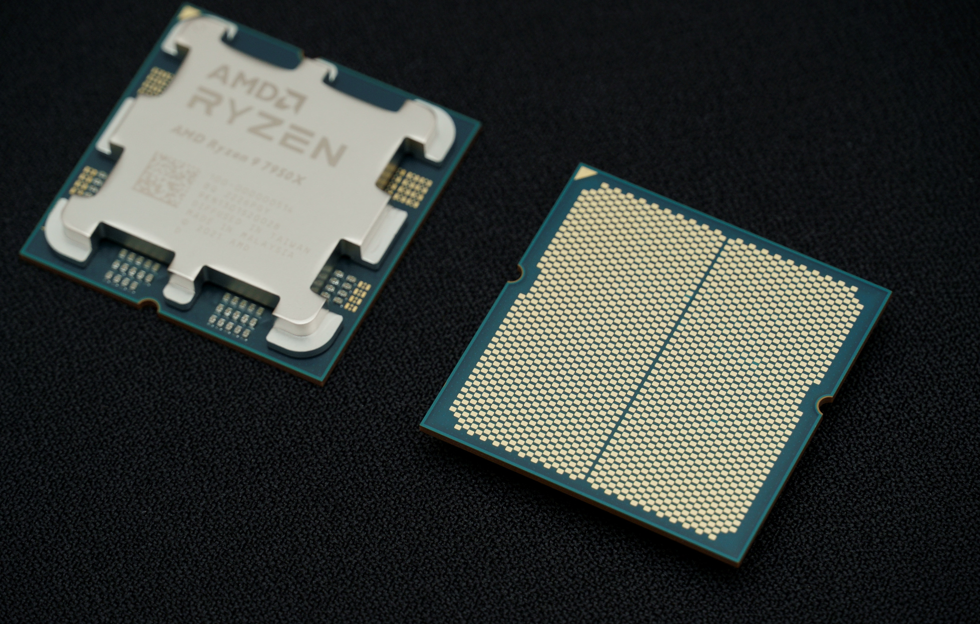 ▲AMD 锐龙7000系CPU改为了LGA封装,其搭载了全新的6nm制程IOD,不仅全系CPU均搭载了RDNA2架构的核显,还大幅优化了IF总线,使其能够支持JEDEC频率5200MHz的DDR5内存,并提供了28条PCIe 5.0通道。