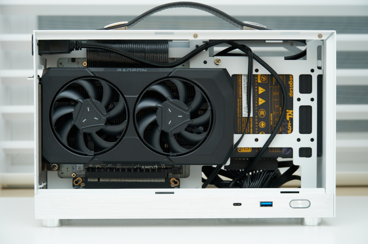 ▲到底有多小呢?我把其放在了闪鳞S300 itx机箱中,其仍有非常大的长度富余,所以大家可以用这款显卡组建性能强劲的itx电竞小钢炮主机。