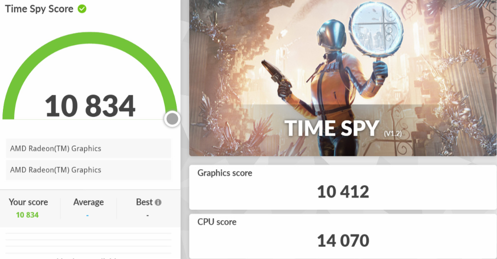 ▲在3D Mark Time Spy中,AMD Radeon RX7600的总得分为10834分,显卡得分为10412分。其中显卡测试1平均帧率68 FPS,显卡测试2平均帧率 59 FPS,可见,即使是在2K分辨率下,AMD Radeon RX7600仍能够提供60 FPS左右的流畅游戏体验。