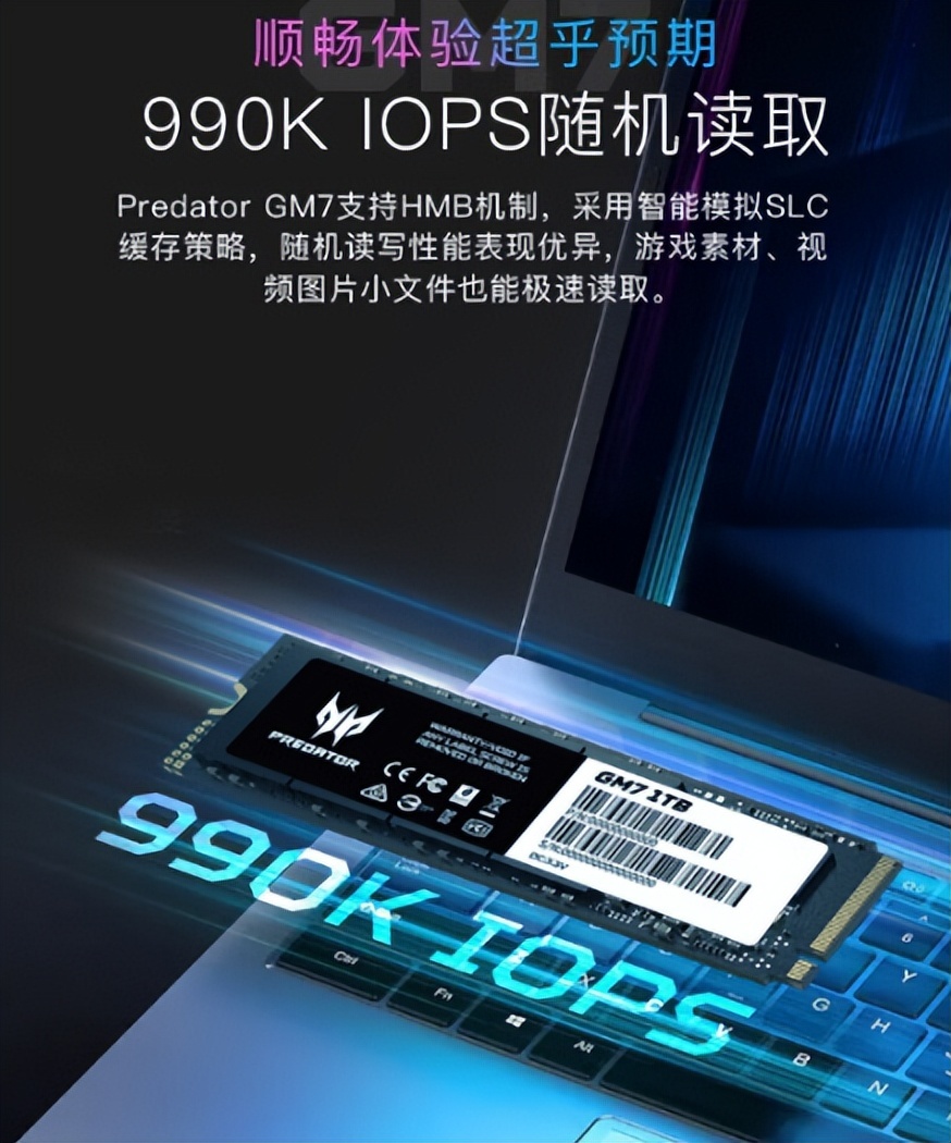 ▲另外,宏碁掠夺者 GM7支持HMB机制,随机读写也该报答990K IOPS,小文件也可以快速读取。