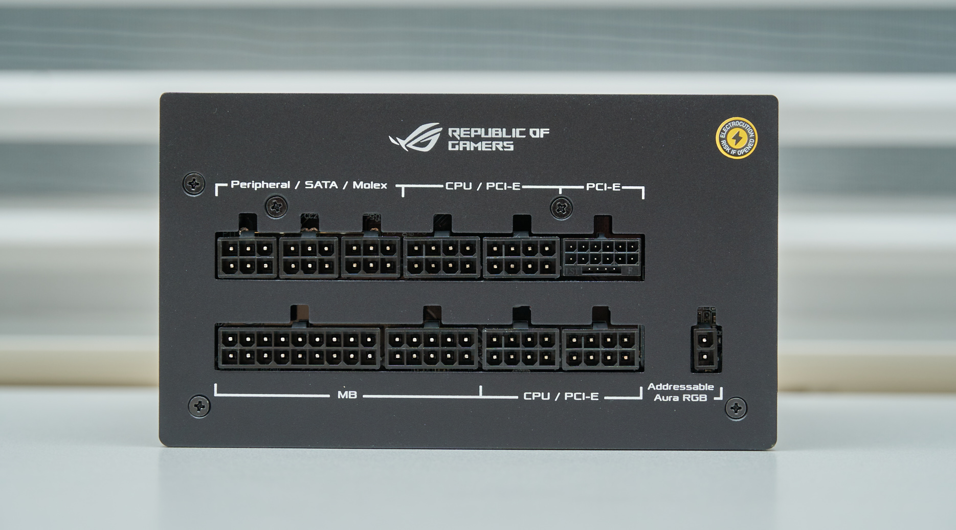 ▲ROG STRIX 雷鹰1000W AURA EDITION是一款金牌全模组的ATX 3.0电源,其最明显特征便是其带有原生12VHPWR 16针接口,即使是新供电规格的显卡使用,也无需转接头了。