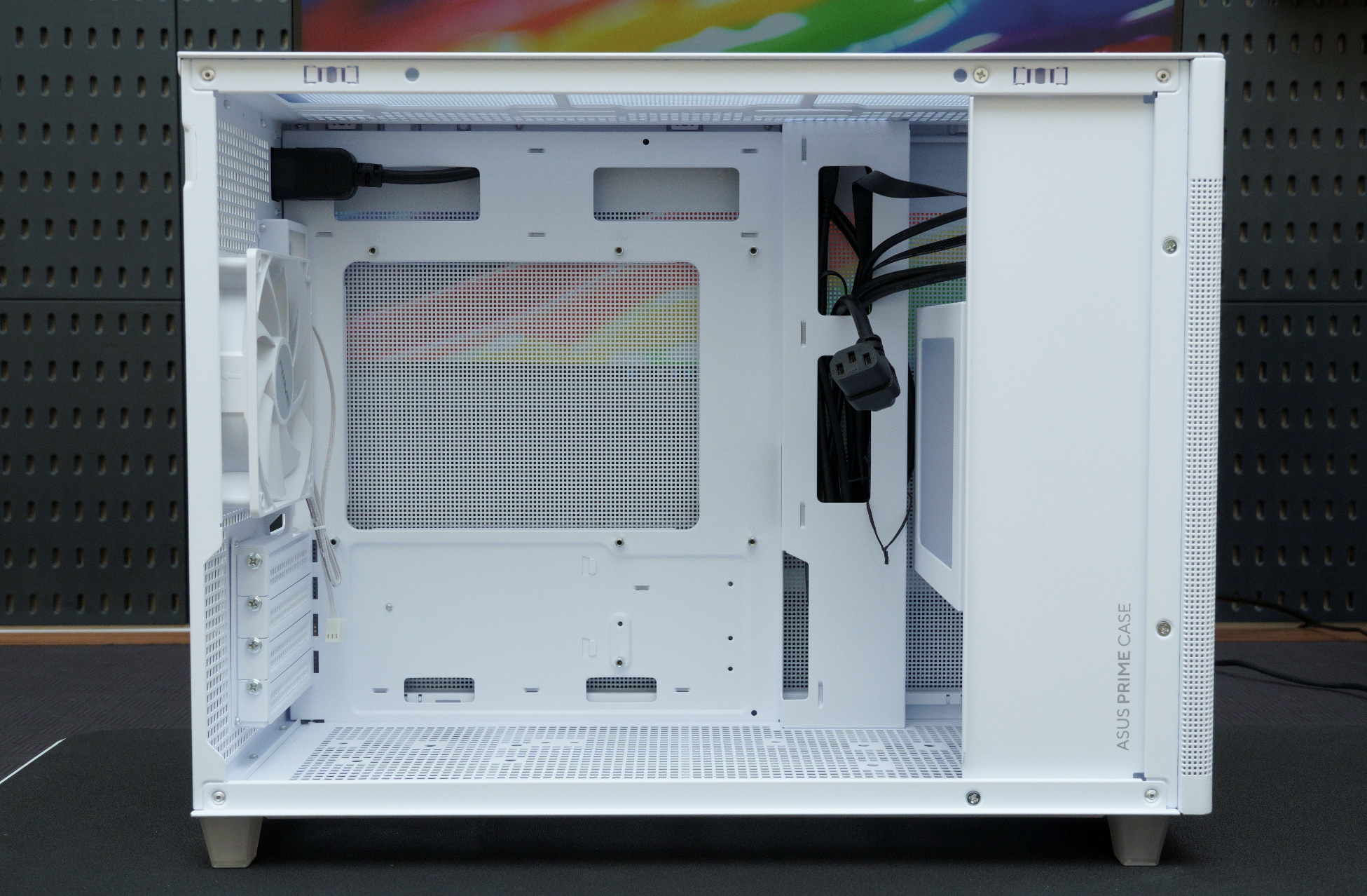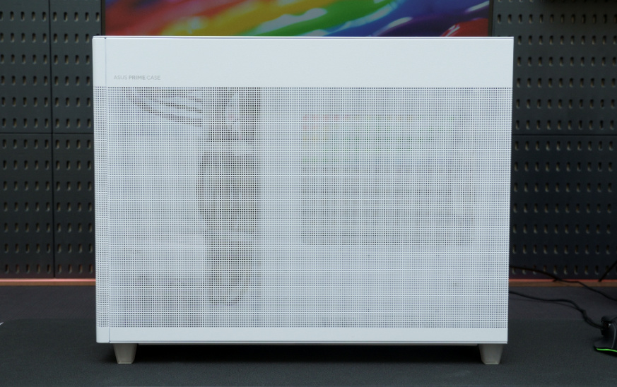 ▲机箱使用的是简约不简单的华硕 ASUS AP201 冰立方,纯白色无玻璃面的设计在这个遍地海景房机箱的年代显得十分难能可贵,而且这种mesh网材质要比不透风的玻璃散热效果更好,不易形成闷罐,即使配合高功率的硬件,机箱内部也不易风扇狂转,噪音自然压得更低了。