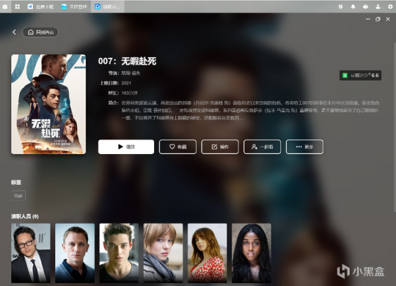 举个例子,007这部电影,绿联除了识别出来文件的清晰度与主演,还顺便把豆瓣评分扒拉下来了,并且还把它的详细出版年份加类型加时间以及剧情介绍都放出来了。更厉害的是还把主演人员信息全都扒拉下来展示出来了。