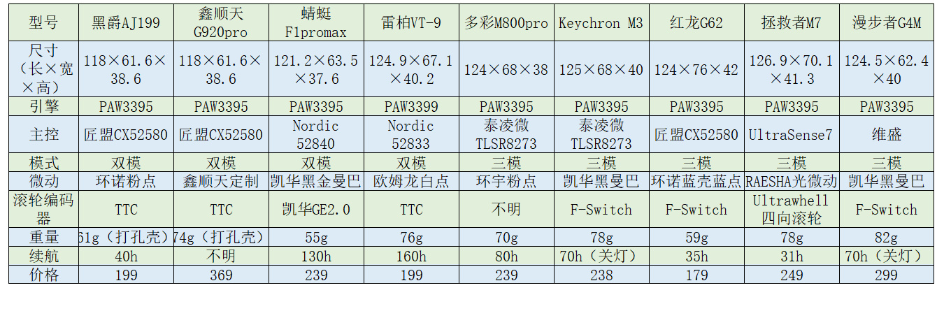 所不同的就是主控不同和电池容量不同带来的续航体验、连接稳定性的区别(当然,也影响鼠标轨迹的实际体验),不同鼠标的不同外壳模具带来的握持感受区别,鼠标重量的区别,不同品牌的售后区别等。本文也将重点针对以上差异进行对比,希望能给各位的抉择提供帮助。