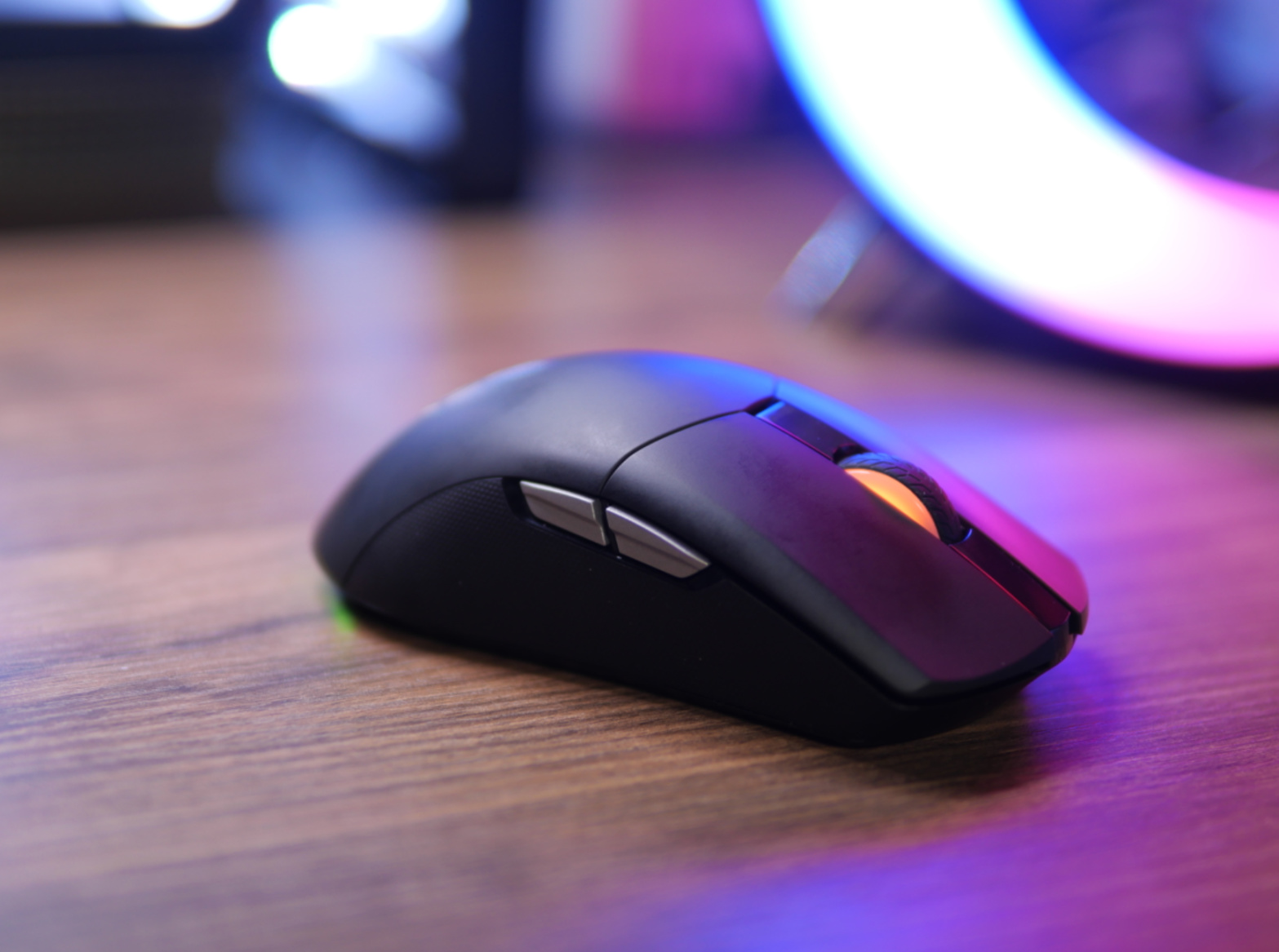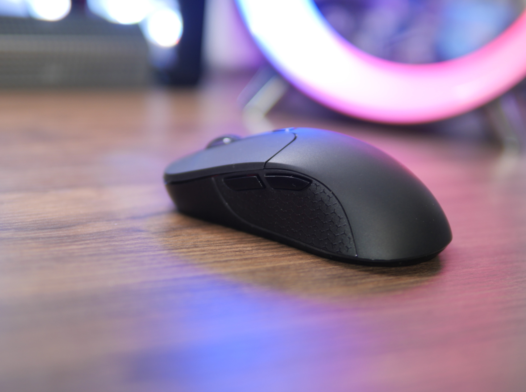 RGB光线上是它的特色带来的是续航不突出且重量偏重,这款鼠标是本次评测中实测最重的一个。而左右双侧侧键对于左右用户来说实在是一个莫大的福利。