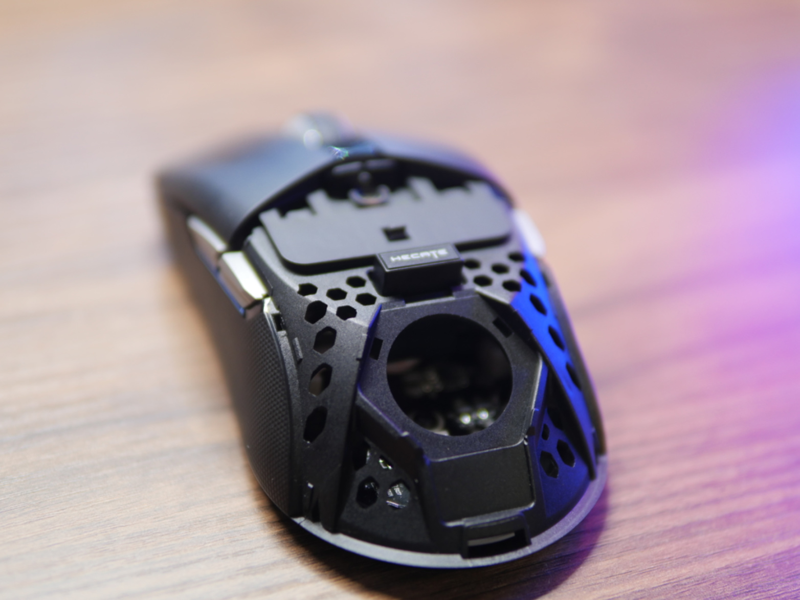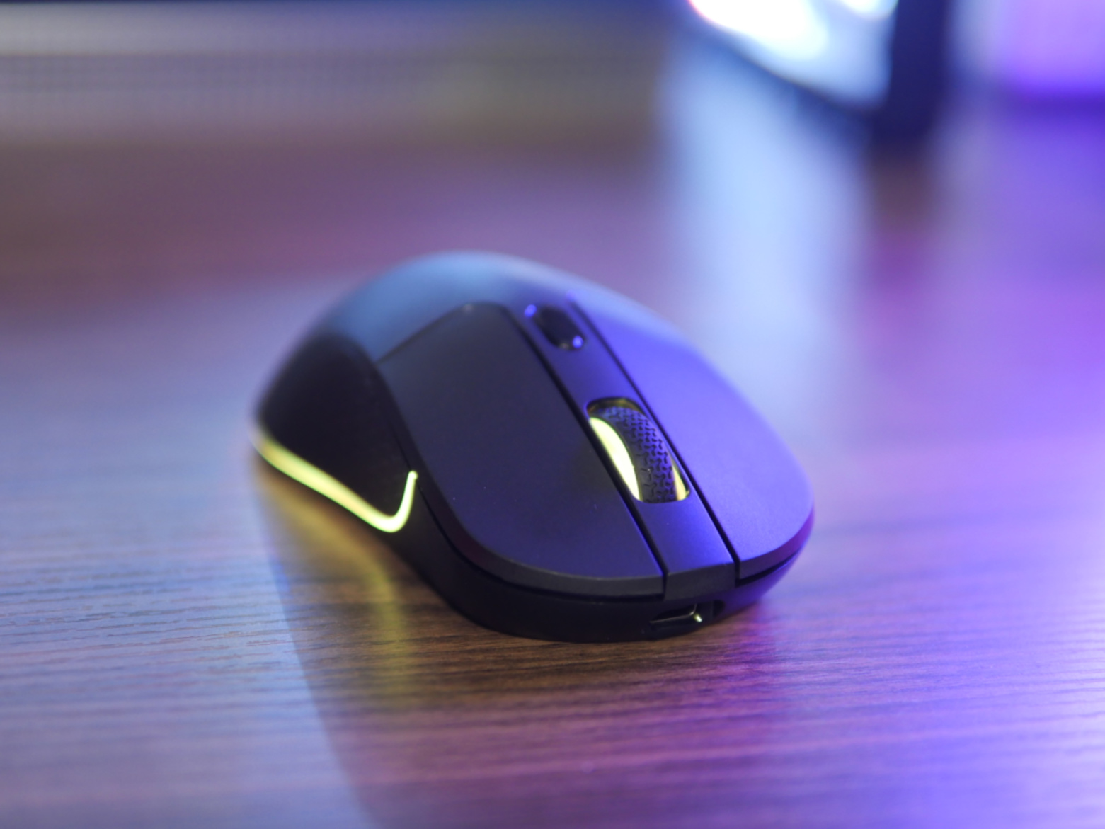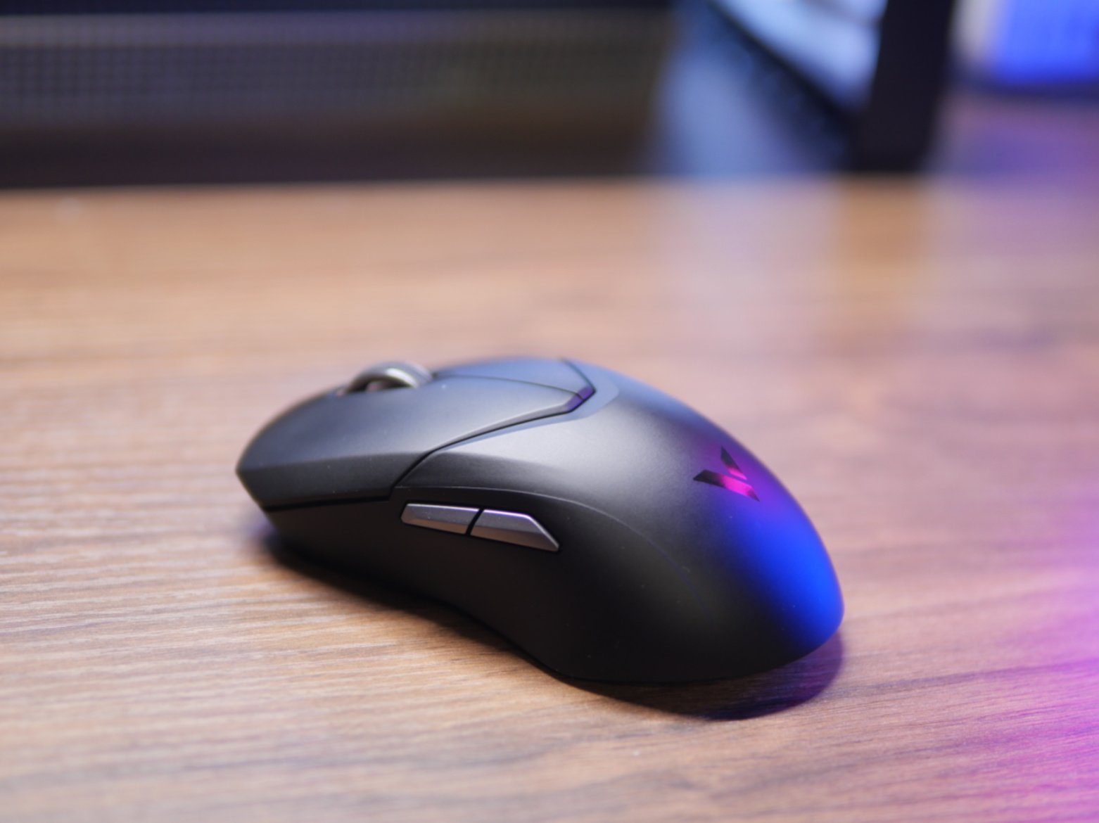 产品本身刚上市的时候非议很多,包括做工不好,内部晃动有异响,接收器不好拔出。不过从我手上这把来看,异响是已经解决了,整体质感算不上好,精致感在本次评测的9款鼠标中绝对是处于下游的。滚轮和光条上的RGB灯效提升了整体观感,也让这款将近80g的鼠标续航只有离谱的31小时,算是喜忧参半了。我觉得这款鼠标说实话,办公比游戏好用。