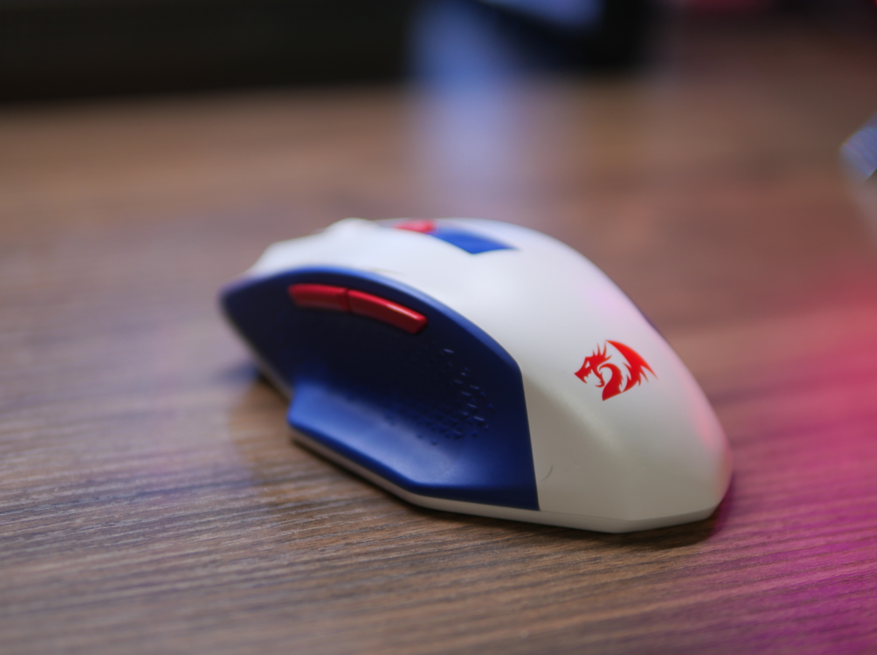 红龙的这个造型和配色看起来很电竞,有意思的是专门右侧还有一个凹槽,正好用来放无名指。所以这款鼠标其实很纠结,它的质感相对一般,你甚至能明显的看到按键内侧的毛边但是它的握感又是真的很舒服,毕竟是本次仅有的两个非对称鼠。这款鼠标比较适合趴握,中等大小。