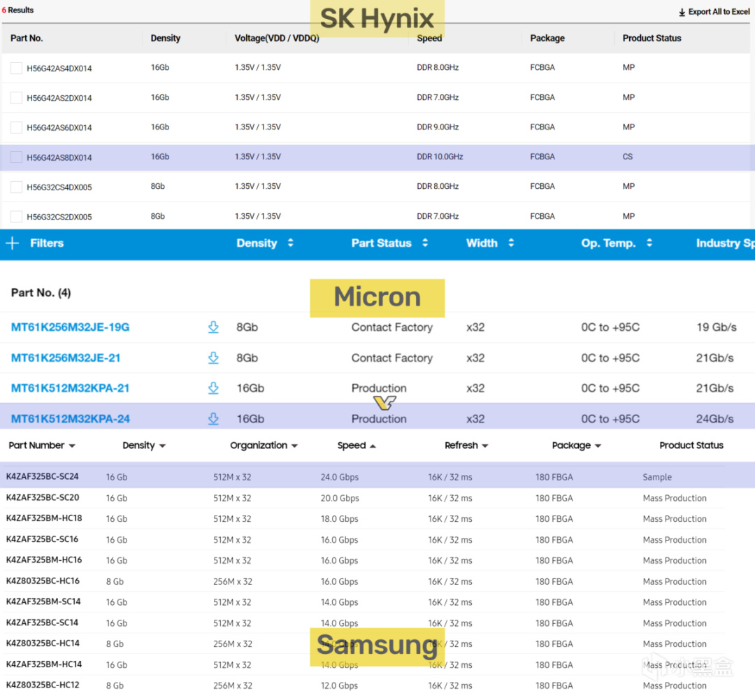 更快的显存目前已经出货,首个产品是镁光24Gbps显存模块,而三星目前也正在出样24Gbps GDDR6显存,SK海力士目前则只有10.0GHz(20Gbps)模块