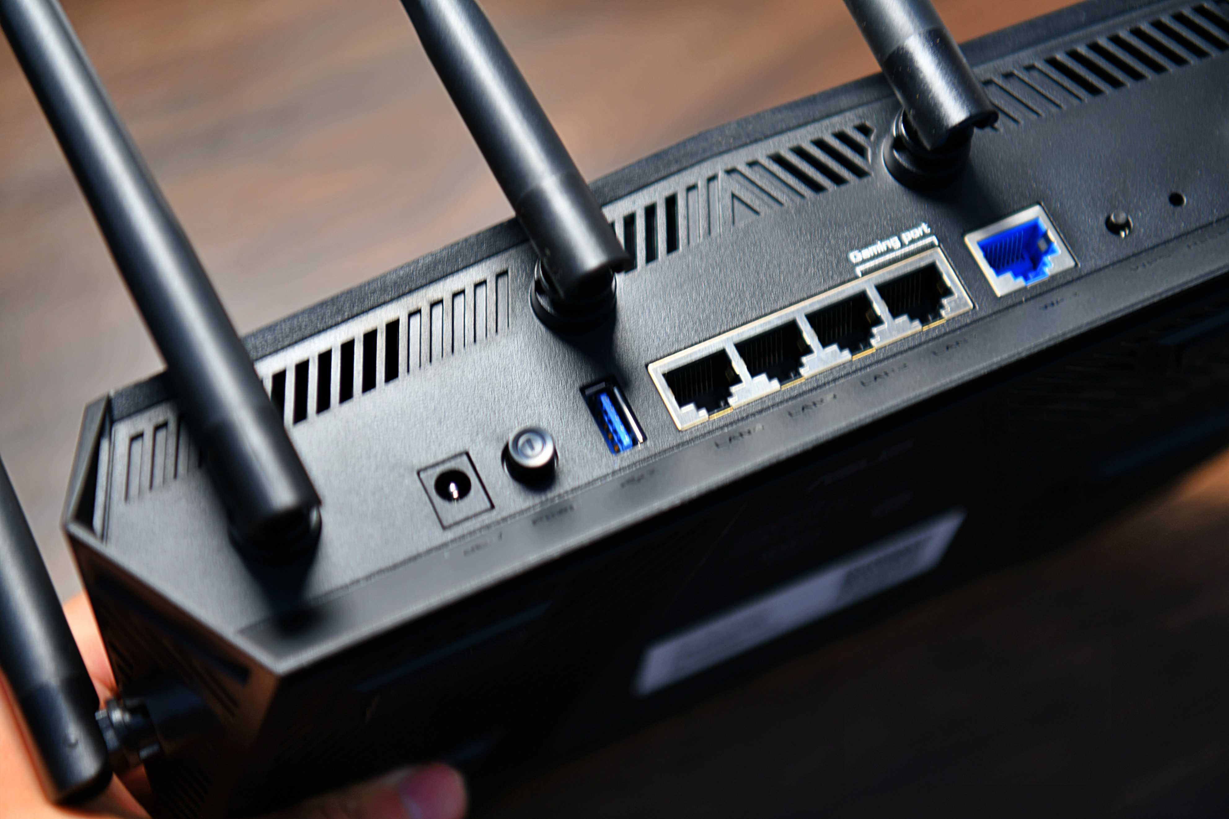 红蜘蛛的接口非常丰富: USB 2.0 、USB3.0 、千兆 LAN 口 * 4、蓝色的 2.5G自适应 WAN 口、以及一个 2.5G 自适应 LAN 口、重启按钮、电源键、以及电源适配器输入口。LAN 1 口支持跟 WAN 口、 LAN 2 口实现链路聚合功能,从而帮助用户获得更优秀的网络带宽。同时LAN 1 口还是专门的电竞口,LAN 1具有优先传输的权限。所以,对于电竞玩家来说,这款路由器是非常非常适合的。