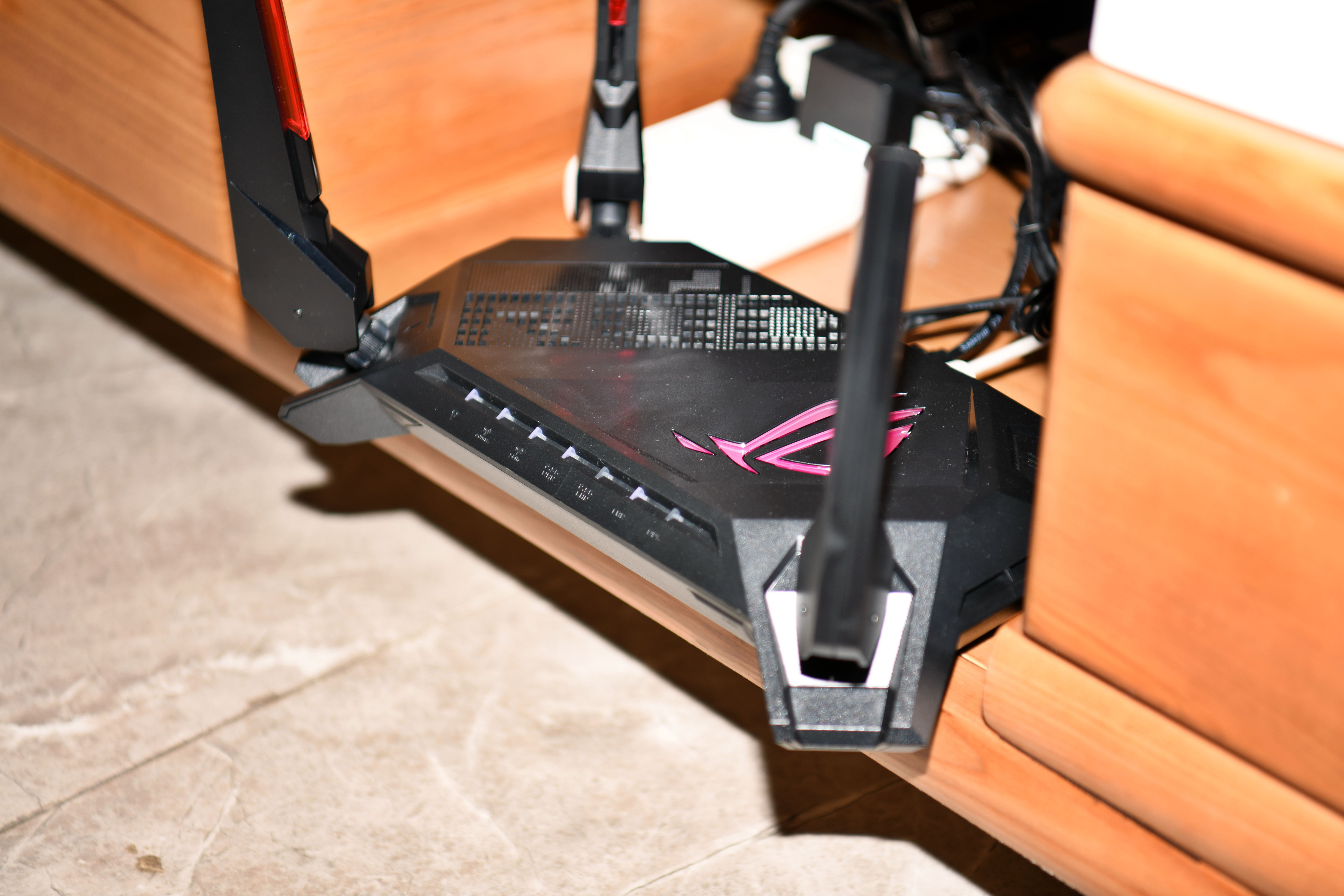 这款路由器可提供 10000 Mbps 无线速率,略逊于新一代八爪鱼的 11000Mbps。该机由两个 4804 Mbps 的 5 GHz 频段和一个 574 Mbps 的 2.4 GHz 频段组成,支持 160 MHz 带宽,搭载 1.7GHz 处理器,支持 ASUS RangeBoost Plus 技术,可以覆盖高达 5800 平方英尺(538 平方米)的面积,而且支持多个网状路由系统 AiMesh 组网。