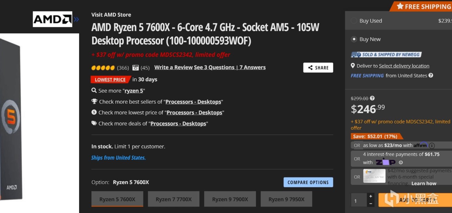 CPU方面,7900X大幅降价800元,锐龙7600X降价30%