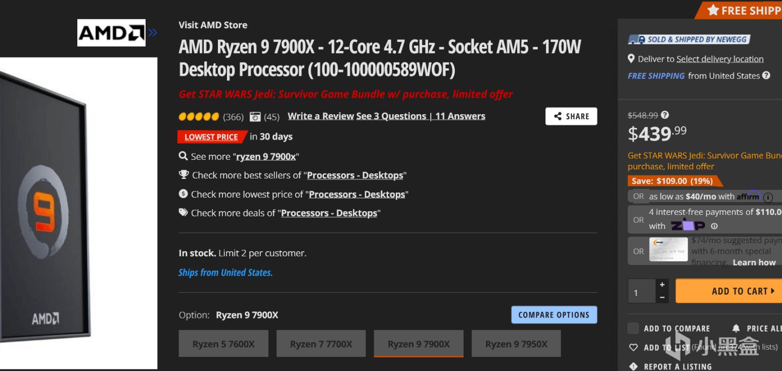 在锐龙7000系处理器的早期阶段,高端和低端CPU的售价普遍下降,这些降价吸引玩家购买,锐龙7900X是同类竞品中最全面的处理器,12核24线程,目前已经降价800元。在本文发布时,它的建议零售价从3999元降至2699元,降价幅度19%,还免费赠送价值650元的《星球大战:绝地幸存者》游戏包