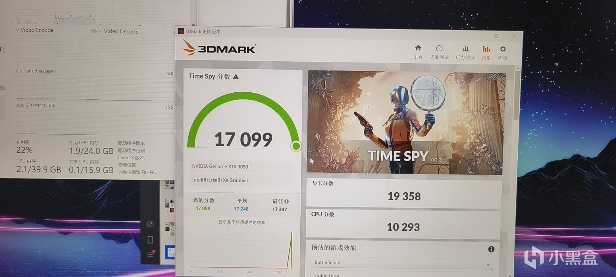 默频跑一下3Dmark time spy 和 extreme 分别在19358分和9946分。可以说是0损耗了。压力测试98.8%通过最高温度不超56°。