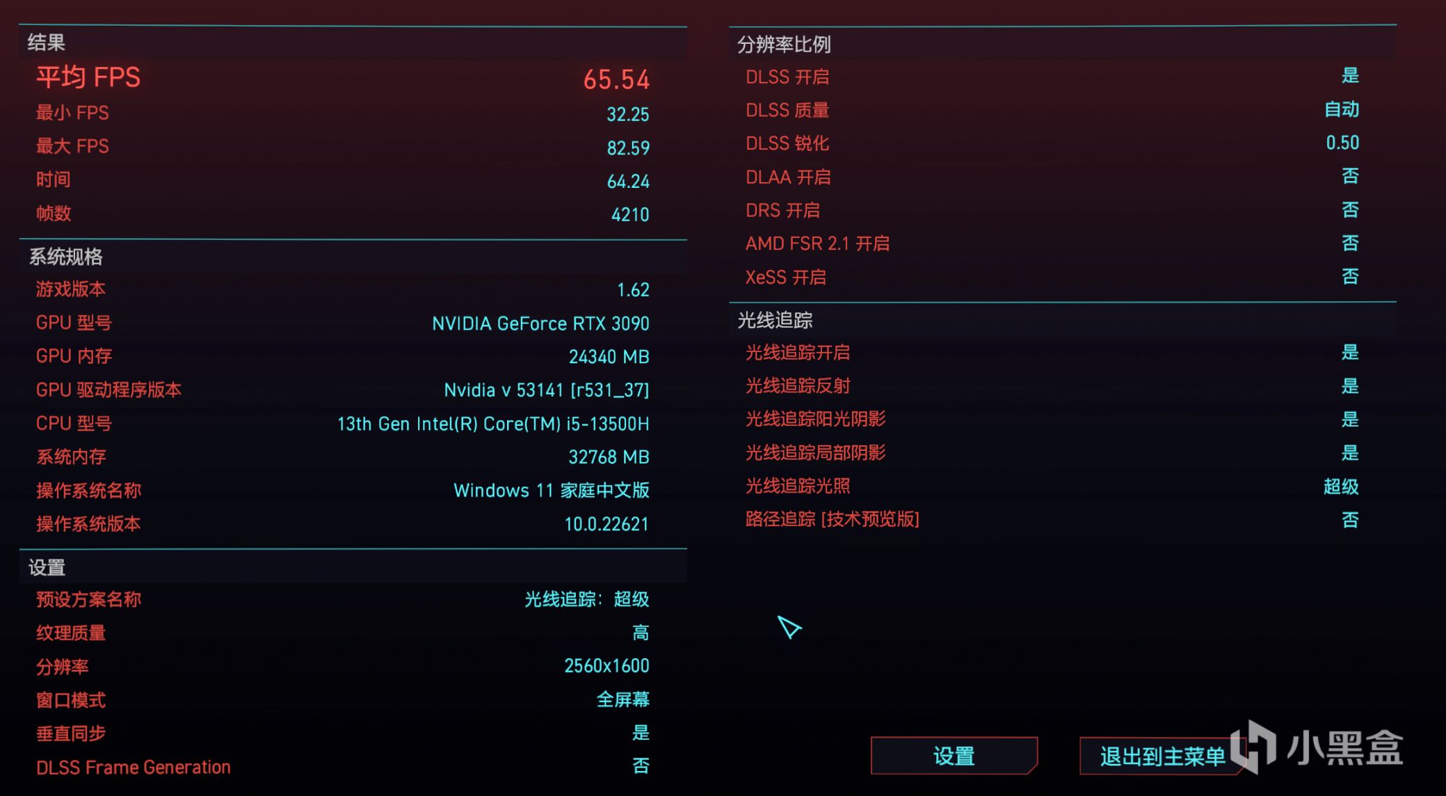 可以说显卡相差不大了。但是这个噪声可以说比笔记本的风扇小多了。下面再跑一个2077这个测试是tb16+直出没有外接屏幕。