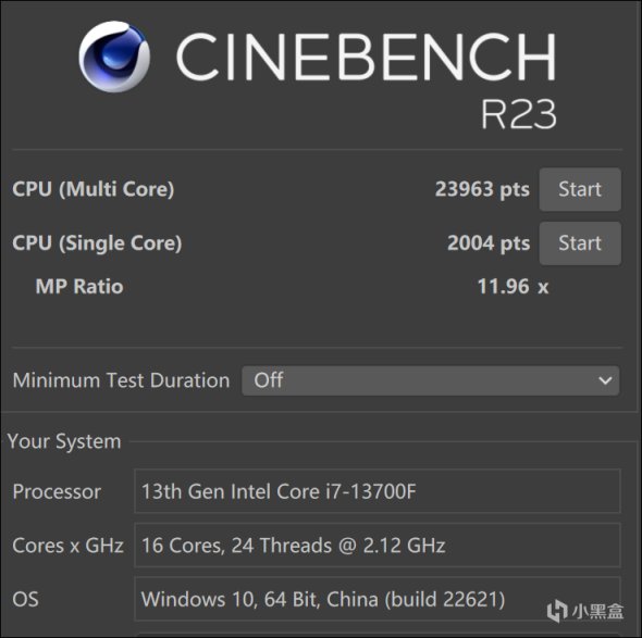 处理器:酷睿i7 13700F,16核24线程(最高睿频5.2GHz)
