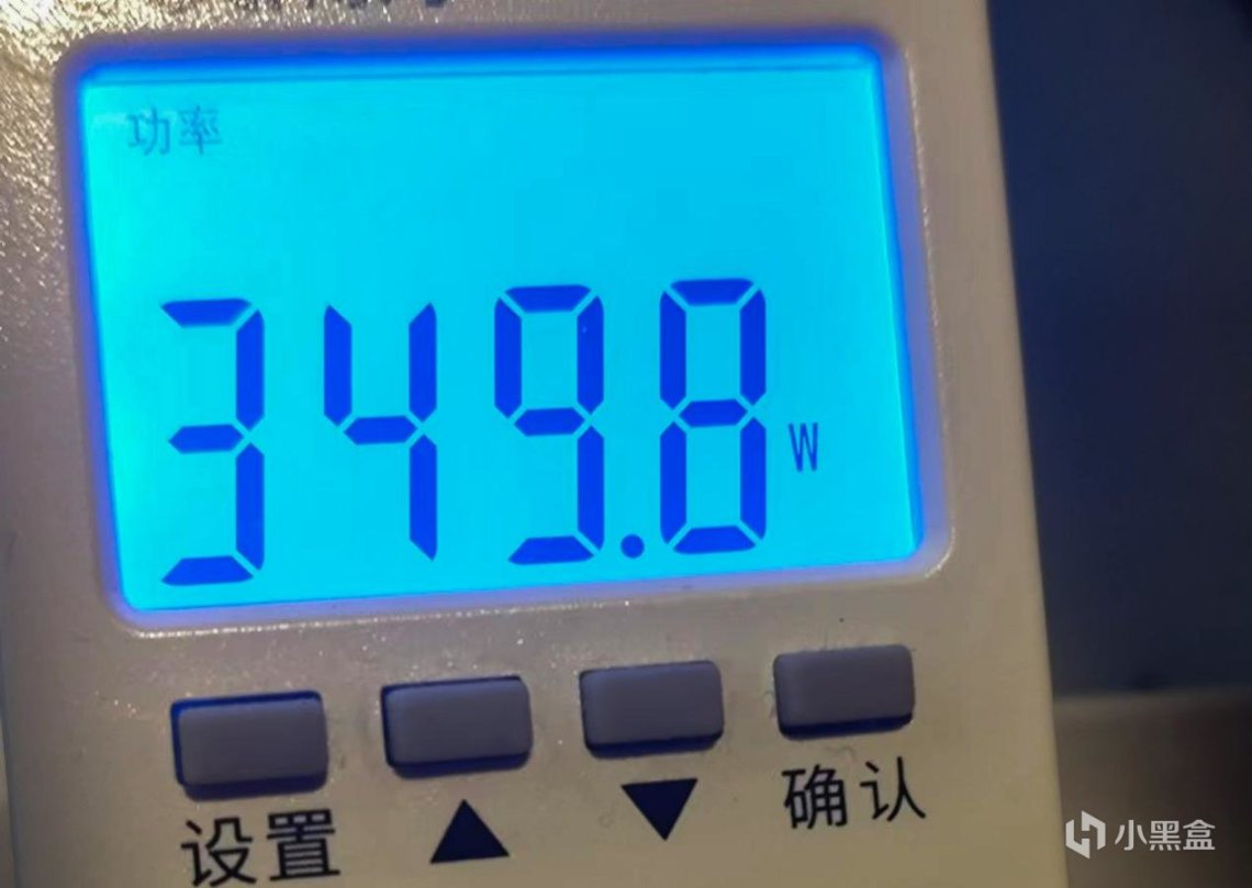 此时插线板功耗为350W左右。风扇噪声方面,可听到比较低沉的风扇噪声,不吵。