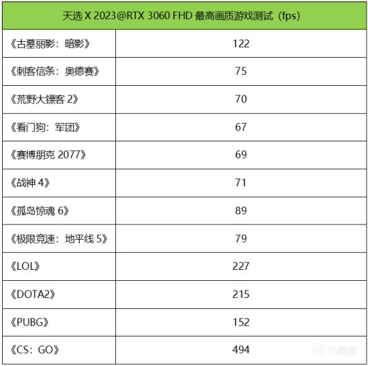 考虑到RTX 3060的定位和性能表现,在游戏实测中,我们先测试天选X 2023在FHD下的游戏表现。