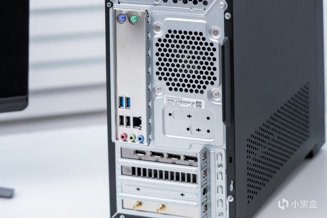 ▲机身后面板接口一览,具备HDMI接口、3×DP接口、2×USB 3.2接口、2×USB 2.0接口等等,实用性不错。