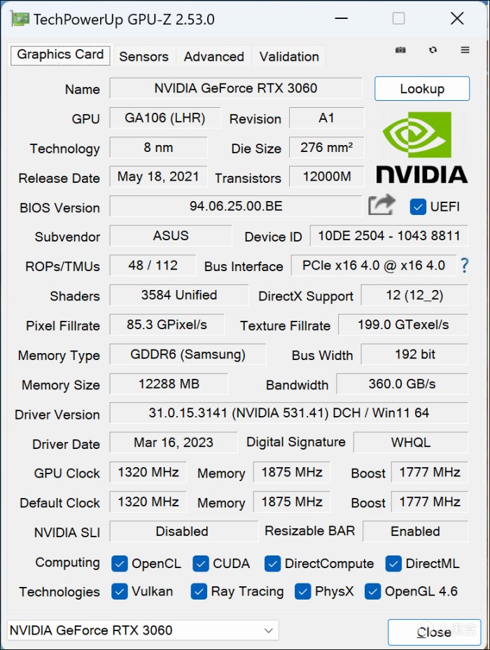 显卡:RTX 3060(12GB GDDR6)