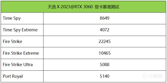 基准测试部分,RTX 3060在Time Spy场景中的显卡得分是8649,这是满血RTX 3060的正常发挥水平,也是FHD分辨率下的甜品级跑分。在Fire Strike Extreme场景中的跑分则是10465,稍高于140W满功耗RTX 3060笔记本独显,表现不错。