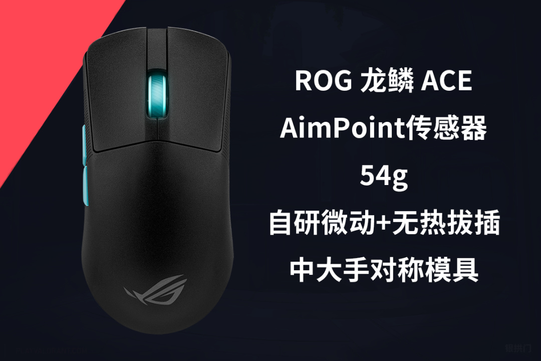 龙鳞ACE模具会和上边的毒蝰更像一点,不过龙鳞ACE屁股更高一点,左右键前端更低一点点。ROG的黑科技生物材料让鼠标重量降到了54g,并且它滚轮处还有灯,你就知道这有多夸张了,但这个表面材料很诡异,磨砂的触感,又很滑,好在ROG自带了防滑贴的,贴上就没问题了。顺带一提这个材质用久了也不会打油,很神奇。