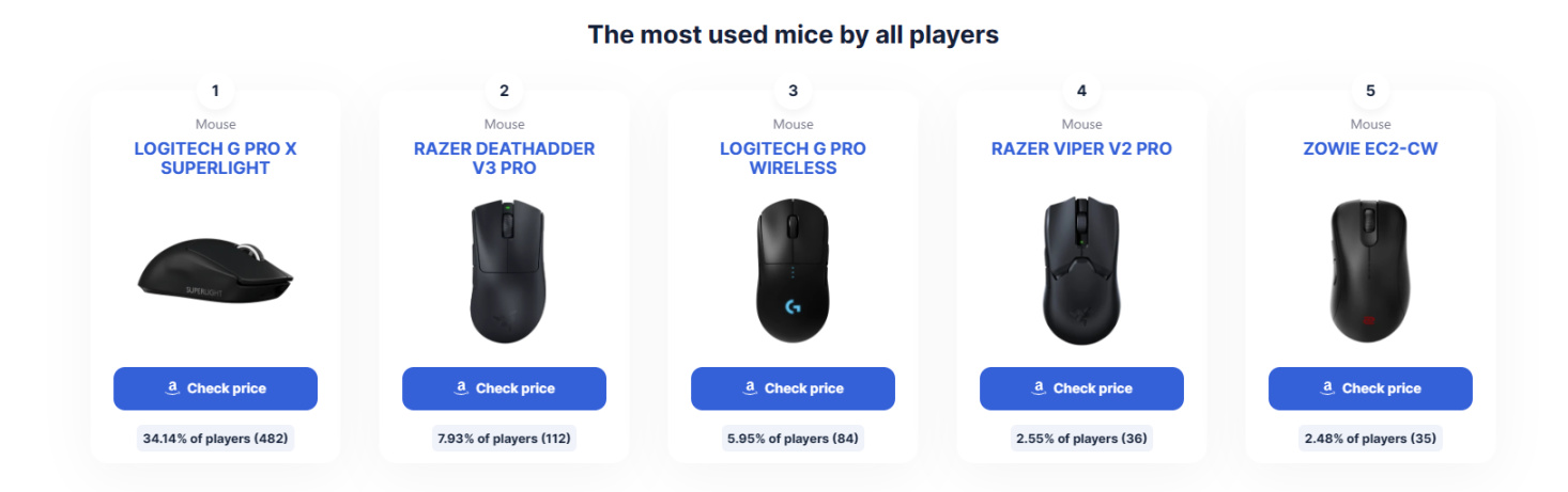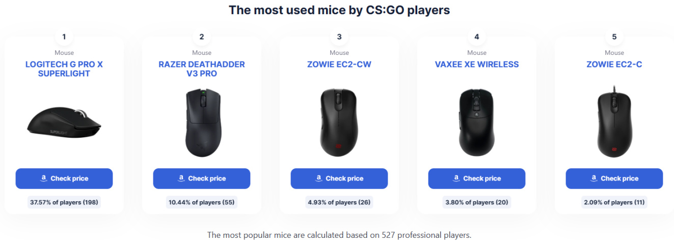 最后再为大家附上各游戏职业比赛的鼠标使用排行,考虑到赞助的原因,仅供参考。