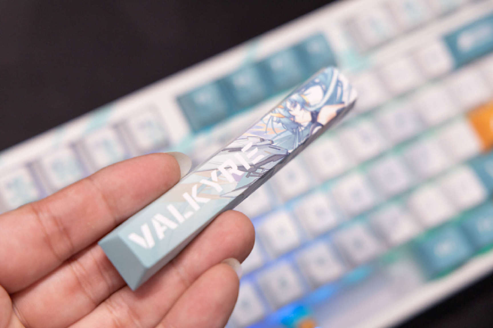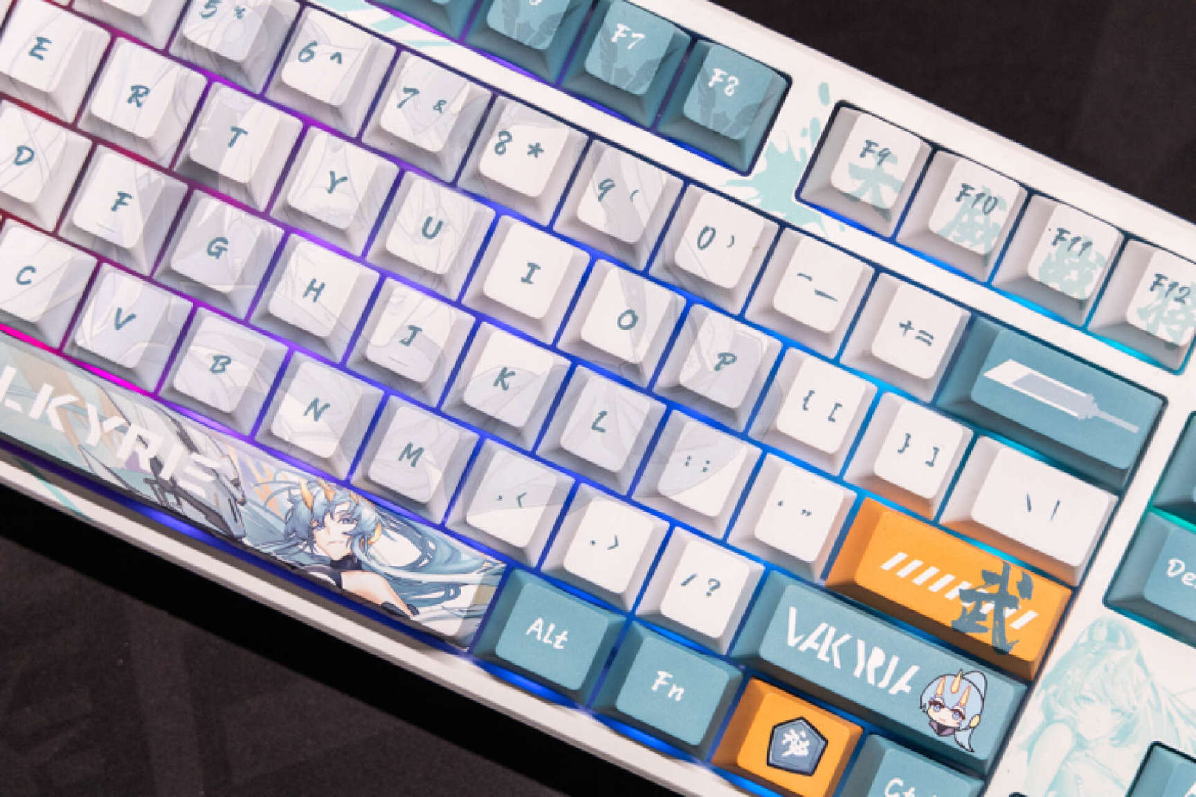 键盘的设计加入了浓郁的二次元风格,这次发布的VK87一共提供了5套不同的风格,我这款选择的是瓦尔基里VK-87MIST迷雾。