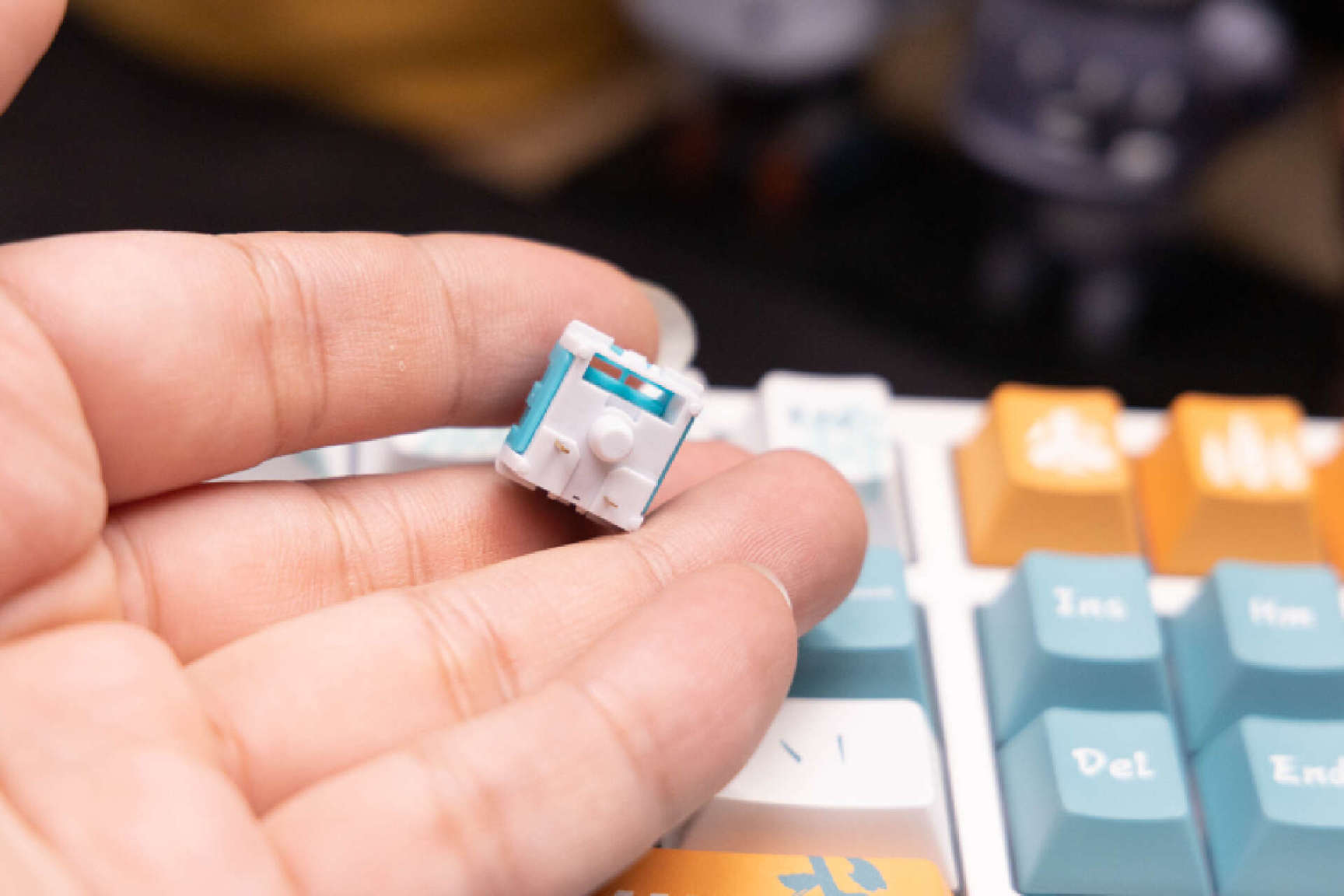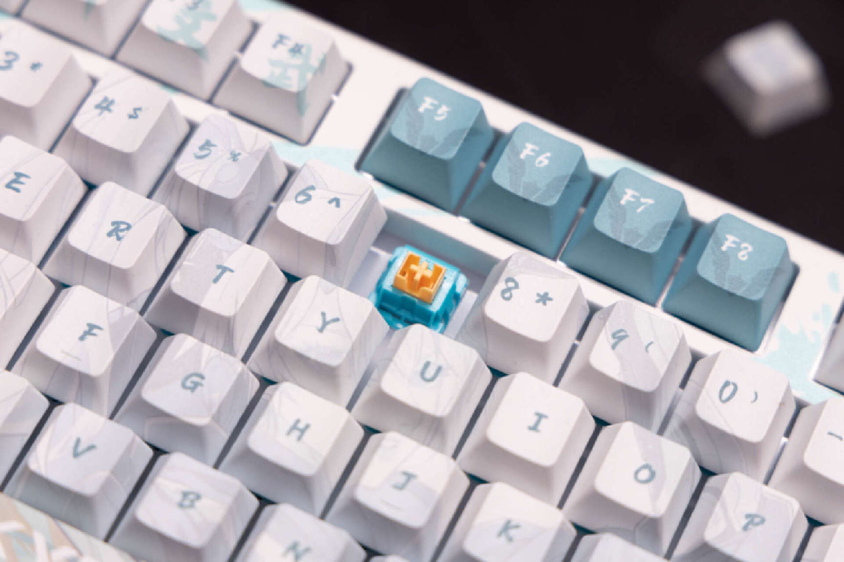 这款键盘采用的是瓦尔基里自研的迷雾轴,轴体采用了主流的火山口结构,配色相当特殊,具有很高的识别度。
