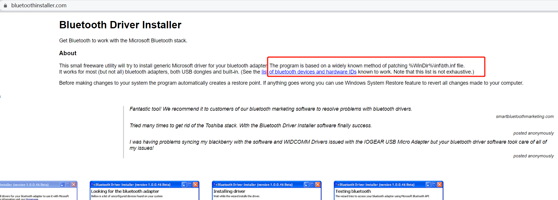 于是我进入了这个工具bluetooth-command-line-tools的网站bluetoothinstaller.com: