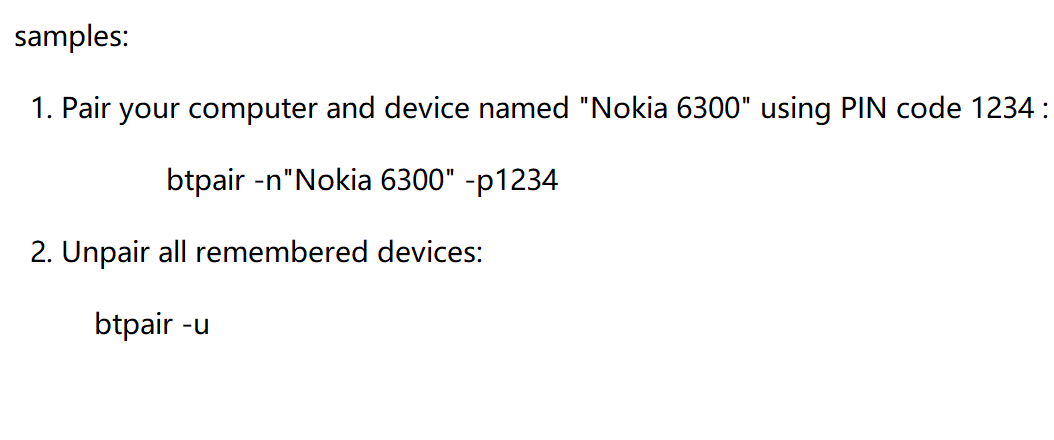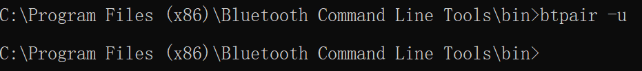 能看见清除配对设备记录的命令是"btpair -u"(注意该命令会清除掉所有配对过的蓝牙设备),随即运行该命令: