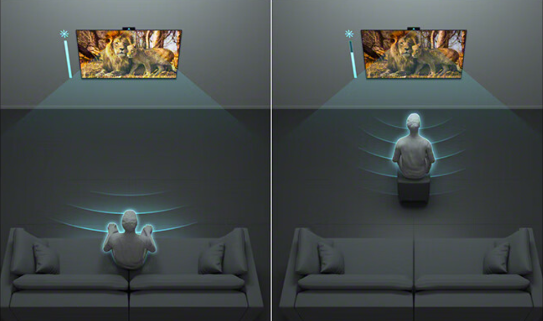 ▲另外,除了常规的智能功能,索尼还将智能应用在了音画调节上,这可以说是走在了各大厂商的前列了。通过摄像头实现的AI环境感应调节Pro功能可以实时根据环境及用户的位置情况调整屏幕的亮度及声音,使用户无论坐在哪里,都在观影C位上。