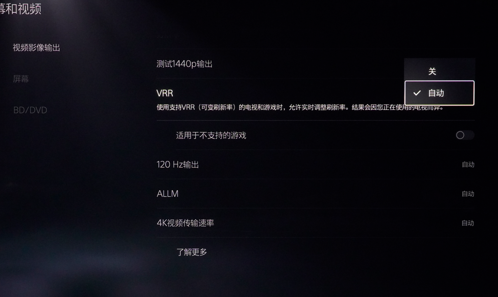 ▲切换后即可在PS5中开启VRR,且120Hz输出与ALLM低延迟功能也可自动开启,使玩家获得高刷新、低延迟的极致游戏体验。