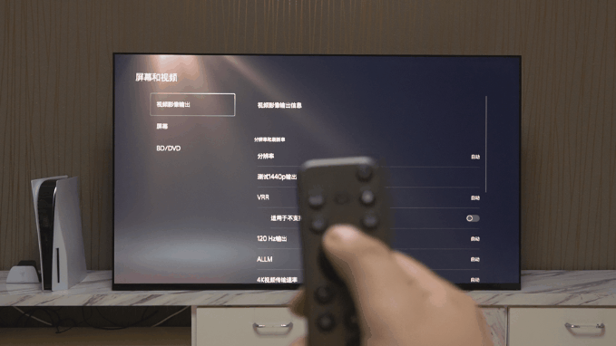 ▲这里我惊奇的发现,原来索尼XR-65A95K的遥控器是可以在控制PS5的菜单的,这样就可以只用一个遥控器同时调整PS5的显示参数与电视的使用参数了,不愧是同一公司旗下的产品,操作体验一体化整合的实在是太棒了。
