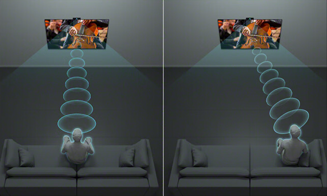 ▲这里我用官方示意图来解释,用户靠前坐时,屏幕亮度降低不伤眼,而用户坐在电视屏幕斜侧方时,电视则可调整发声位置,将声音精准的送到用户的耳中。