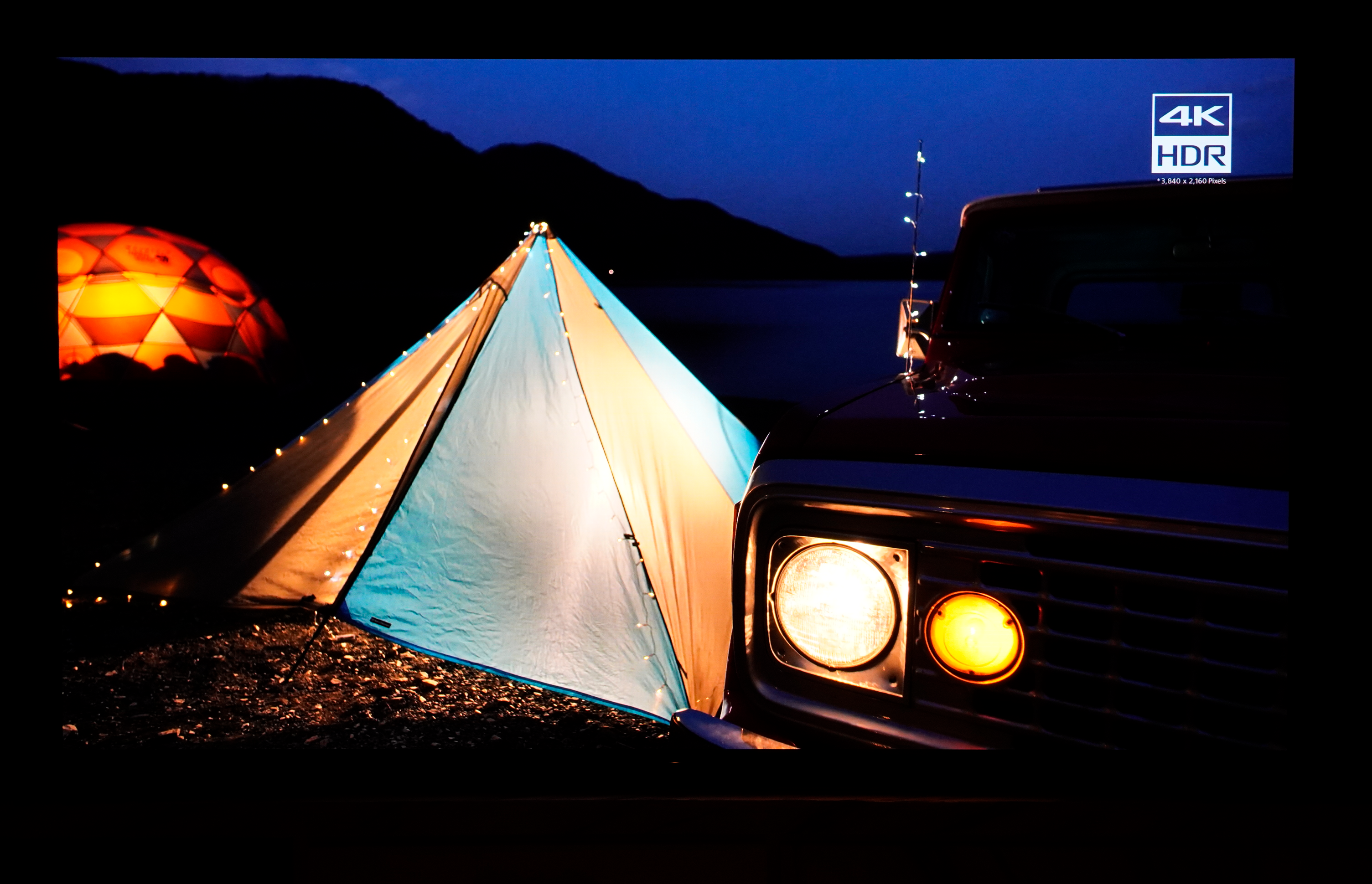 ▲4K HDR演示片《露营》中,画面的明暗对比还原十分完好,远方亮处的富士山与湖泊的倒影明亮但不过爆,而背光暗处的汽车牌照依旧清晰可见,这便是XR认知芯片驱动量子点OLED屏幕带来的强烈明暗对比与暗部细节还原,画面简直美爆了。